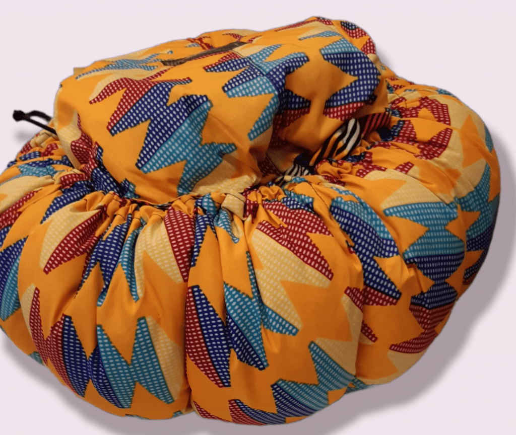 De New Cookingbag bestaat uit een bodem en tien compartimenten, elk afzonderlijk gevuld met kapok zodat de vulling goed verdeeld blijft. Voor de binnenkant gebruiken we een bijpassende kleur stof, want als je wilt kun je de New Cookingbag aan twee kanten gebruiken! Met een koord door een tunneltje rondom kun je de New Cookingbag strak en bol trekken zodat de compartimenten met de kapok tegen de pan drukken. Een rond kussentje, eveneens gevuld met kapok, dekt de bovenkant af. Een vernuftig geheel, en wat ook belangrijk is, eenvoudig in het gebruik!