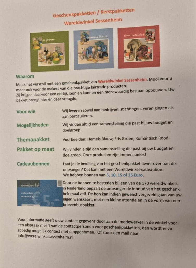 Meer weten of een bestelling plaatsen? Stuur een mail naar info@wereldwinkelsassenheim.nl of loop binnen in de winkel. We helpen je graag met een geschenk dat met zorg is samengesteld en écht iets betekent.
